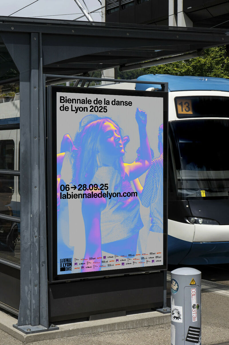 Biennale de la danse de Lyon. Proposition d'identité visuelle, affiche, programme, signalétique, goodies. Projet finaliste, non retenu.