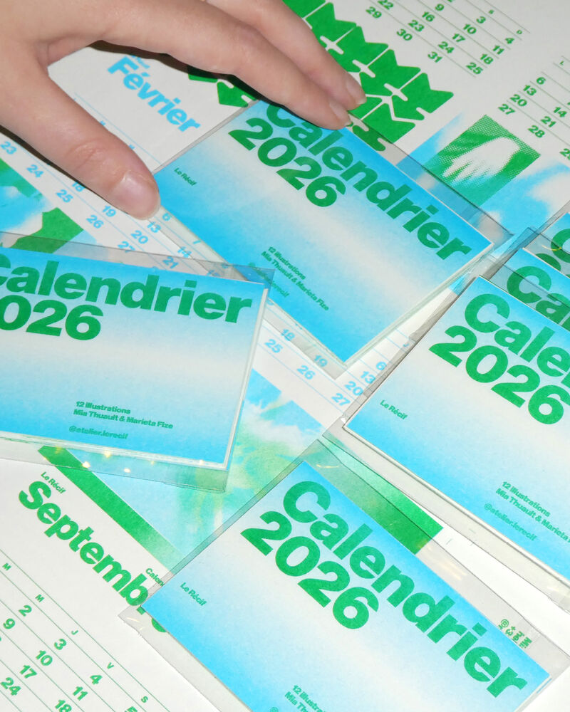 2025, Le Récif. Calendrier imprimé en risographie. Avec Mia Thuault.
