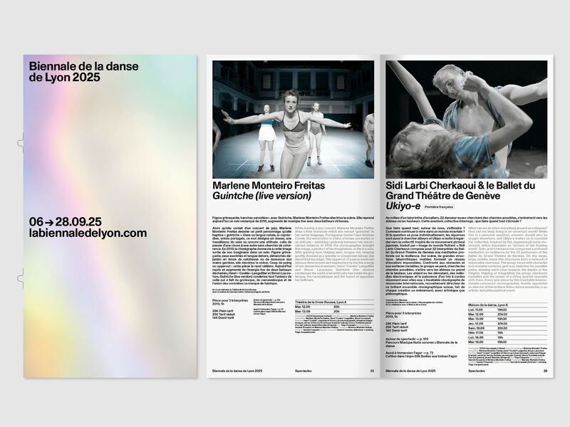 Biennale de la danse de Lyon. Proposition d'identité visuelle, affiche, programme, signalétique, goodies. Projet finaliste, non retenu.