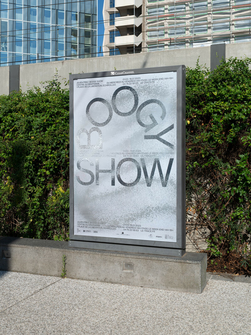 2022, Centre du graphisme d’Échirolles. Affiches, signalétique, feuille de salle, motion design pour l’exposition de Julien Priez, Boogy Show. Avec Spassky Fischer.